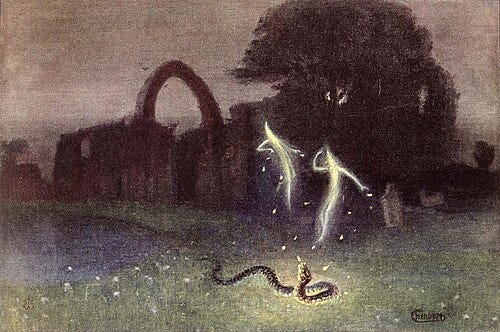 But I stood at the window and watched for minutes as the scene unfolded. I ran upstairs for a few seconds before coming back to a dark, empty night. I still don’t know what happened, but in the days after, I couldn’t help but think of the Will-o'-the-Wisp2. The old fae stories of distant fires and lights, said to lure people off of paths, and into bogs and marshes. I wondered if something was calling me, hoping I would offer a helping hand.